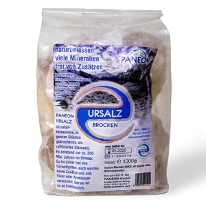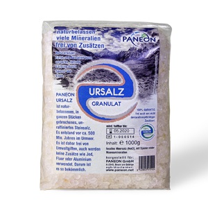 1 kg PANEON Ursalz GRANULAT ist hochrein, naturbelassen fossil, ca. 500 Mio. Jahre alt und in ganzen Stücken gebrochen.